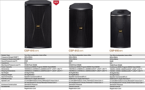 Với công suất liên tục 300W, lên đến 1200W đỉnh, CSP-610 mang lại âm lượng lớn, không bị vỡ tiếng ngay cả khi hát hay chơi nhạc ở mức âm lượng cao.